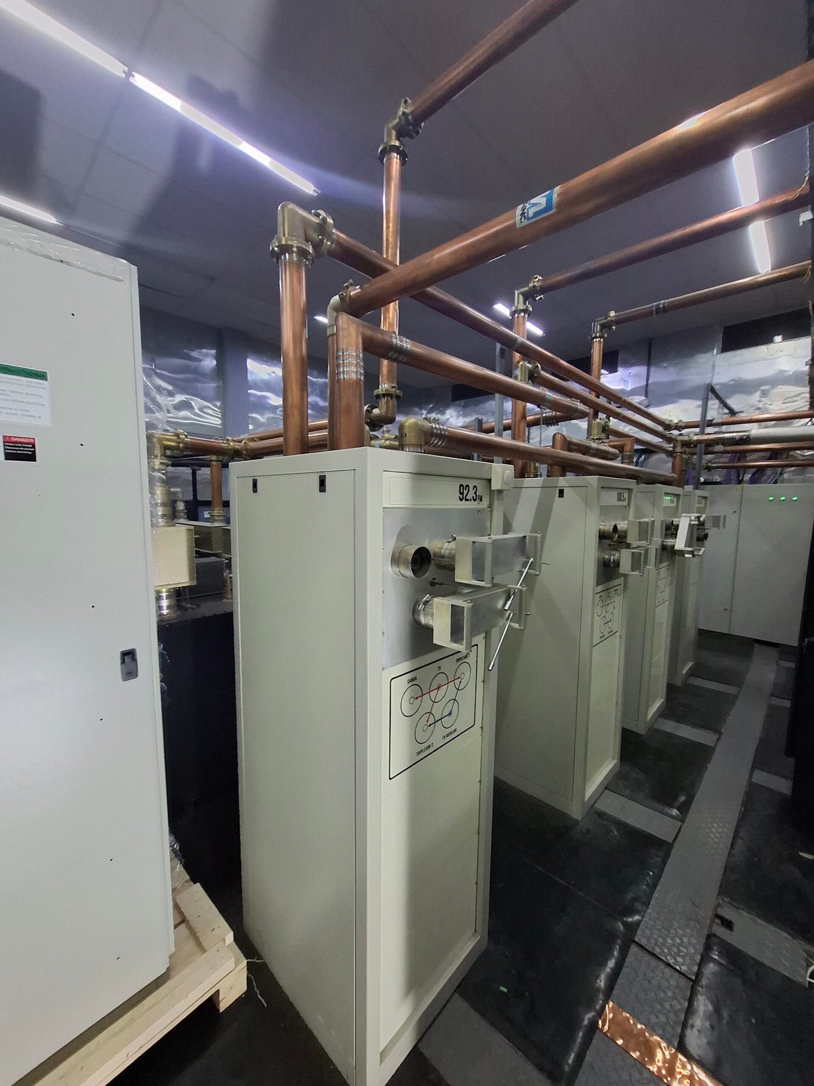 Ubicación en la sala transmisora, se realizó conexionado con lineas rígidas y se colocaron watímetros externos de la firma Bird.