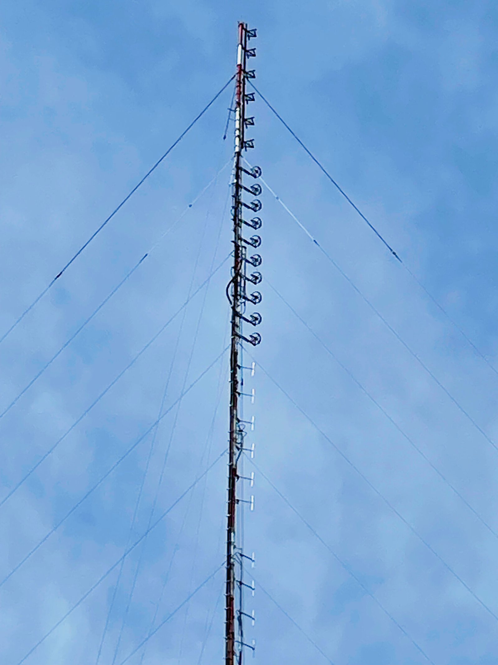 Para el sistema superior de 2 frecuencias x35kw c/u se eligió una antena JHCP-6 “The Brute” y para el sistema inferior de 3 frecuencias x 35kw cada una se eligió una antena JSWB-10 de 10 bays.